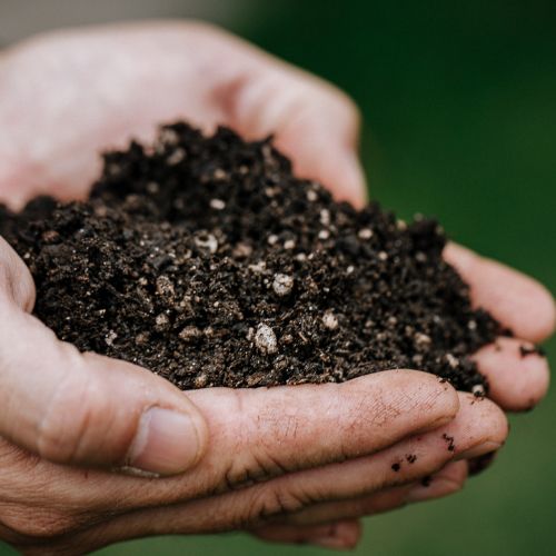 Essa mistura garante drenagem, leveza e oxigenação das raízes.